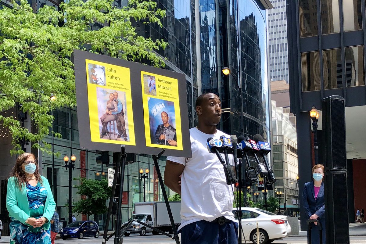 Anthony Mitchell speaks during a news conference May 27, 2020, announcing a federal lawsuit filed against Chicago police for allegedly fabricating and suppressing evidence.